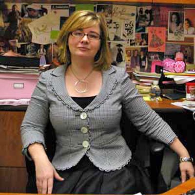 The fun office of a Fashion Writer She loves shoes and handbags, but doesn't allow herself to pay $1200 or get on a six month waiting list for a Chloe Paddington bag. "I really admire beautiful shoes and purses, but I just won't do the really high end." Kim's personal style does not lean towards glitz and rhinestones, but more to the classics. Her "fashion splurge" is a nicely cut jacket and her favorite designer is Nanette Lepore. She gives a nod to the trends by incorporating them into her style, but has never gone "head to toe trendy. Real trendy is just for the limo lifestyle and not many of us lead that life!" She went to her first New York fashion show last September and "it was almost impossible not to stare." She was literally shoved up against Ellen Barkin for ten minutes and couldn't help but notice her 2 inch pear shaped diamond ring. "I put my hand up; showing my ring and said 'I used to be so proud of mine'. She replied "yes, it's over the top isn't it" and then turned the ring around." She remembers that The Zac Posen show was sometimes like a rock concert. On the way out she came face to face with Uma Thurman "I never felt so short in my life. She's about 6'3" I came to just about breast level. What a striking woman she is!" She even bumped into rapper 50-cent; "He called me ma'am!" The show gave her the opportunity to see old friends from other papers, but it was also exhausting. The hours were 9 to 9 every day and then back to the hotel to write for the next day's paper. "These shows are a good way to see just what's going on in the world of fashion and what I can bring back to Cleveland." According to Kim there is no special "Cleveland look" but "the further you get from the city the more popular 'comfortable' becomes." Kim's articles are basically harmless, certainly not life threatening. Yet she gets nasty phone calls and emails after every article she writes. She likes getting feedback and has come to ignore the "go home B*!" comments. She gets tons of male feedback as well as female. "But in reality, I don't even pretend to care about male fashion. There's just not enough change there, not enough to make a major difference."